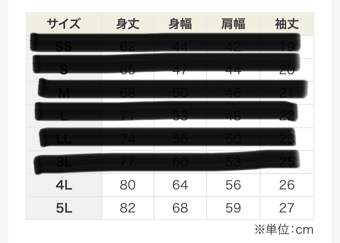 ※4L,5LはTシャツの材質が異なります。予めご了承ください。